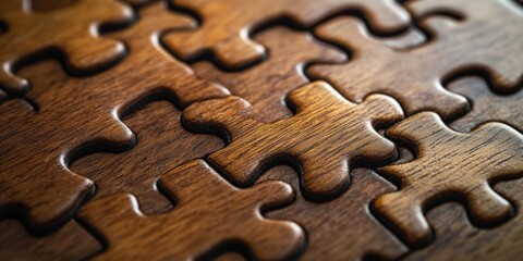 Wooden jigsaw puzzle on a table with one missing piece, waiting to be solved.