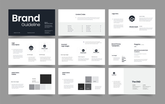 Brand guidelines presentation lauout and Minimalist corporate brand identity guide template