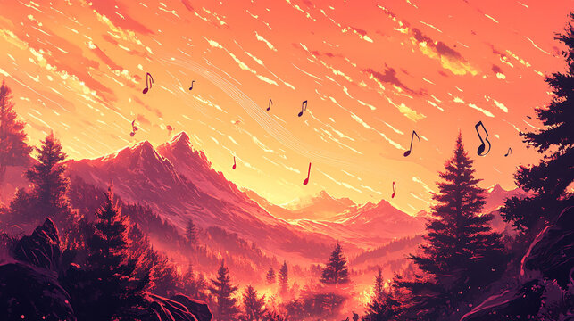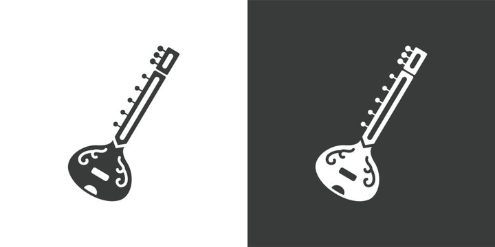 Black and white illustration of a guitar, vinyl record, and boombox with musical notes on a clean background, featuring space for a logo and tagline.