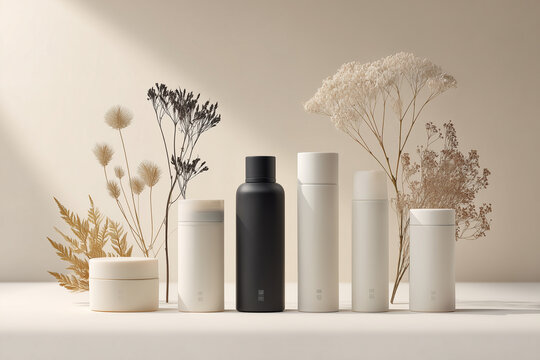 白背景に映えるミニマルな化粧品セットと高級感ある佇まい(美容 ブランド 撮影)