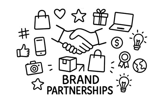 Branding Doodle Icons. Brand Partnerships. Hand-drawn doodle illustration of Brand Partnerships. In the middle
