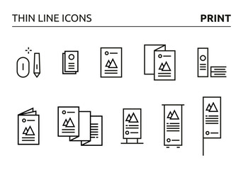 10 print element icons designed in thin line style, can be used for web, print and logo