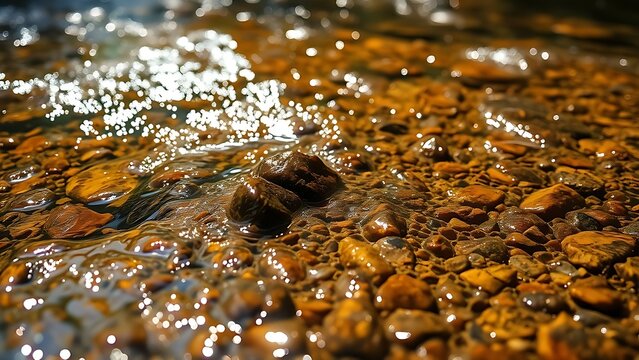 tolerable. Shallow stream flowing over porous rocks with tiny bubbles and dappled sunlight. travel magazines, destination branding, designed for outdoor magazines and nature guides.