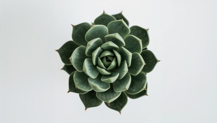Green rosette succulent captured from above with clean white backdrop, ideal for botanical prints, natural textures, plant care guides, interior design inspiration, and organic product branding