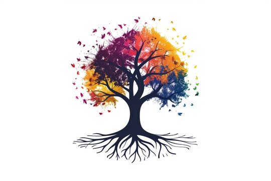 Tree of Life Logo Inspiration: Abstract Tree Design with Root Vector, Featuring Vibrant Colors on a White Background