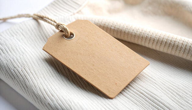 Blank Tag on Clothing: A close-up shot of a blank tag hanging on a soft, textured piece of clothing, offering a clean and versatile canvas for design or branding purposes.