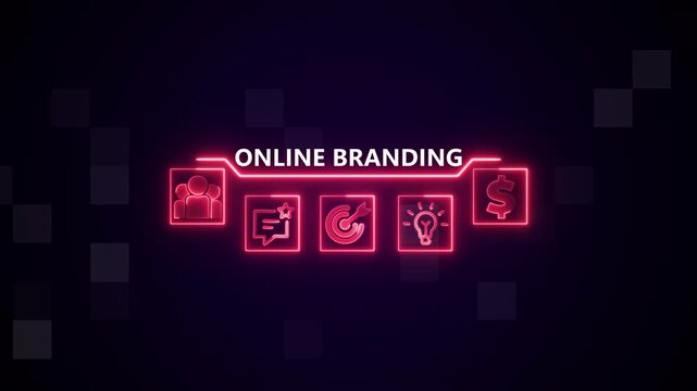 Person typing on laptop with brand strategy icons floating above branding marketing