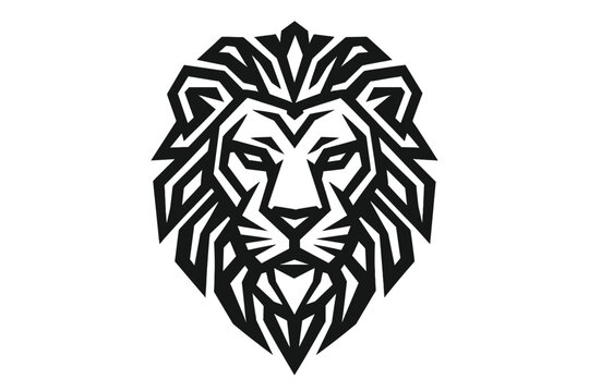 Majestic lion portrait, serene gaze, detailed lines, nature background, art print