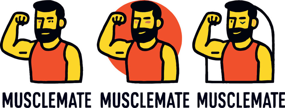 Three Strong Men Flexing Muscles in Orange Tank Tops