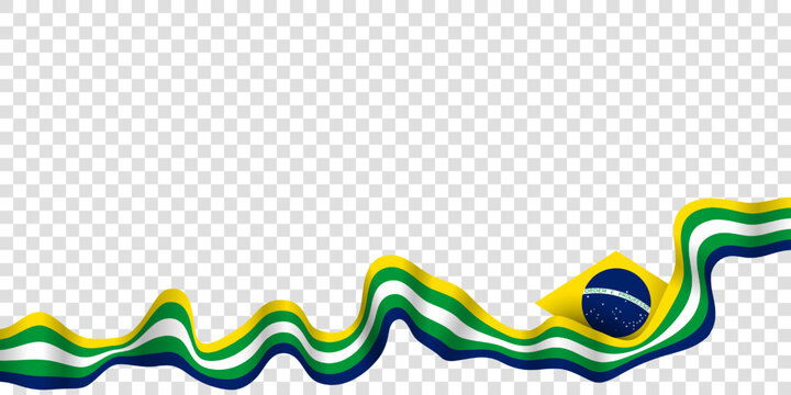 Brazilian independence day. Waving layered green yellow blue ribbon with brazilian emblem