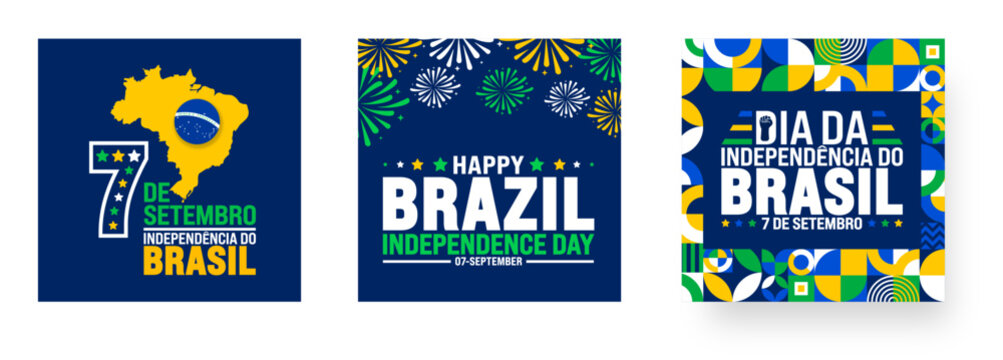 7 September Brazil Independence Day social media post banner or background design template set. dia da independência do brasil background. Holiday concept.