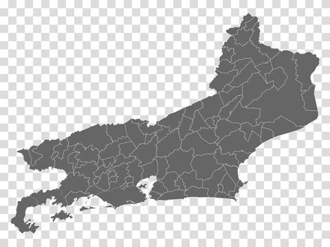 Blank map State Rio de Janeiro of Brazil. High quality map Rio de Janeiro with municipalities on transparent background for your web site design, logo, app, UI.  Brazil.  EPS10.