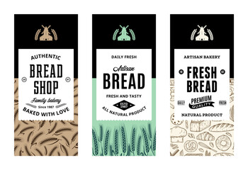 Bread labels in modern style. Bread logo and packaging design templates for baked goods, bakery branding and identity. Vector bakery illustrations and patterns