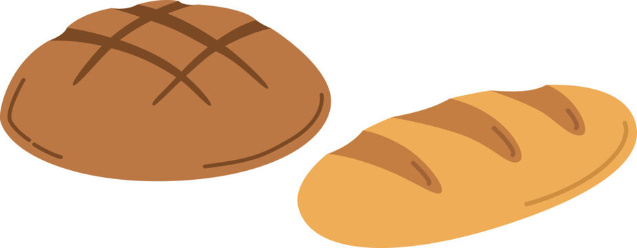 Illustration with rye bread and wheat loaf isolated on white. Bakery products in siple style