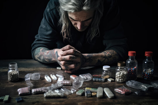 conceptual image portraying the journey of overcoming prescription pill addiction , highlighting the struggle against opioids and substance abuse