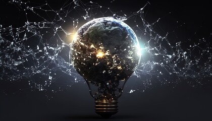 Light bulb in the digital data network of a thousand possibilities, creative openness to technological smart progress created with generative ai technology