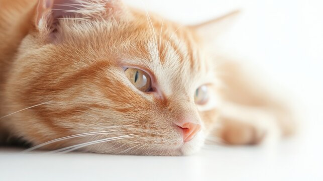 Orange cat undergoing a health check-up with a veterinarian using a stethoscope in a bright, white environment, focusing on its heart and breathing