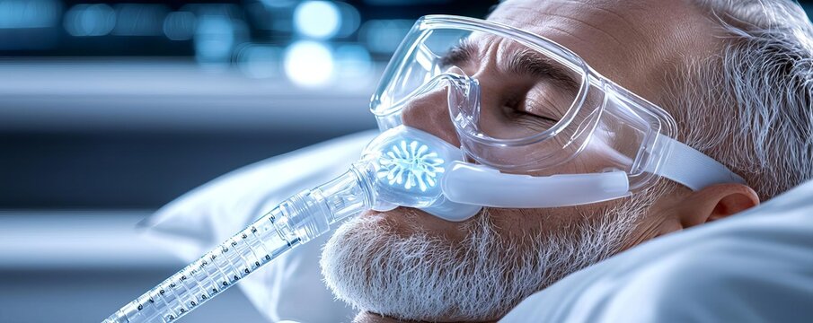A patient lying in a hospital bed with an oxygen mask, struggling to breathe, representing the severity of pneumonia
