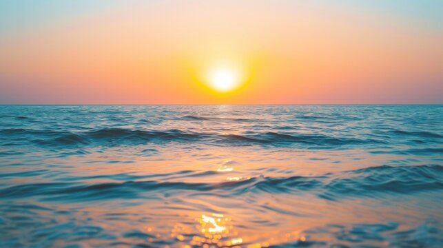 Golden sunset over calm ocean waves creates a serene atmosphere at twilight
