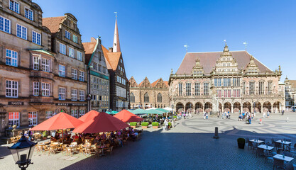 Germany, Free Hanseatic City of Bremen, marketplace, merchants houses, cafe, townhall