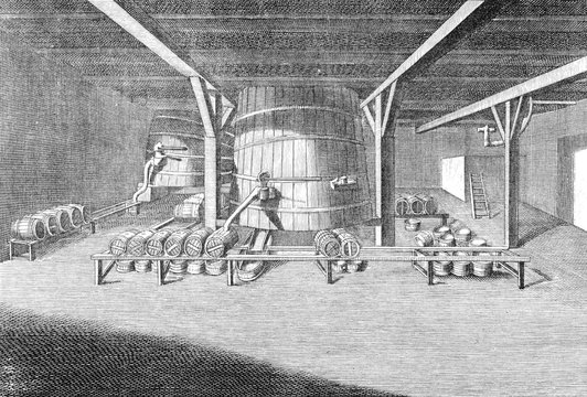 Modern graphic of a craft brewery with rustic amber tanks, perfect for food and beverage industry insights.