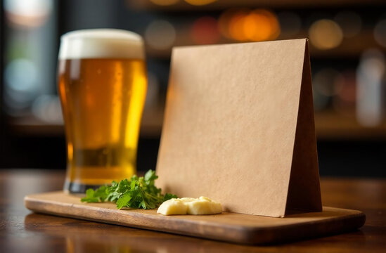Glass with cold fresh beer on clover field on blurred green background with bokeh lights. Oktoberfest and St. Patrick's day celebration in a pub or bar. Card, banner, poster, flyer with copy space