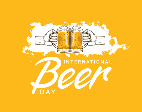International Beer Day illustration vector design with hand holding mug of beer isolated on orange background can be use for party, celebration and festival
