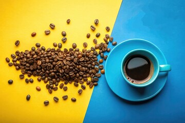 Minimalist Double Exposure Coffee Blue Cup Beans and a Touch of Artistic Flair