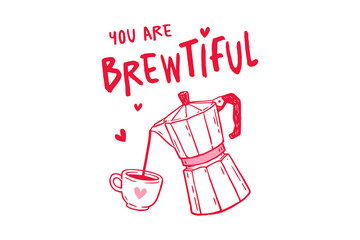 You Are Brewtiful Coffee Moka Pot Valentine Pun Sublimation design