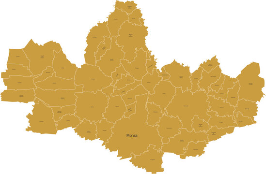 Vector image of the province of Monza e Brianza with separate municipalities and editable labels