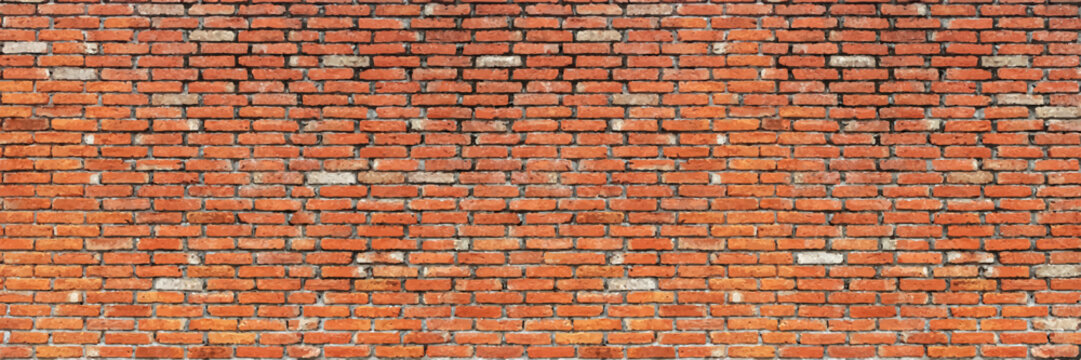 Old red brick wall background, wide panorama of masonry