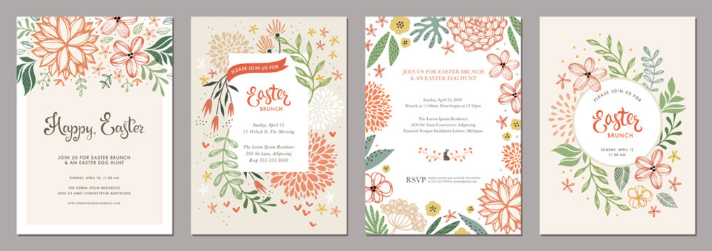 Trendy floral Easter templates. Good for poster, card, invitation, flyer, cover, banner, placard, brochure and other graphic design.