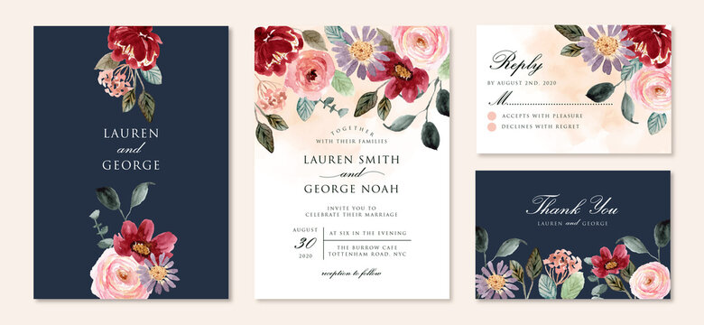 wedding invitation suite with beautiful floral garden watercolor