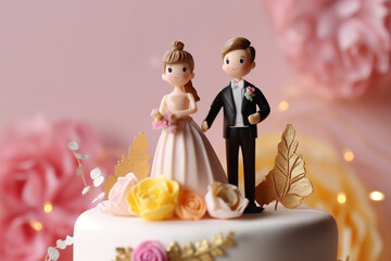 Cute Wedding cake topper with bride and groom. Gay marriage concept. Generative AI illustration