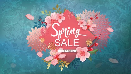 Spring Sale Vector Illustration. Banner With Cherry Blossoms.