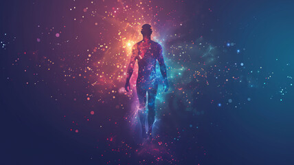 Astral Body Floating in Starry Space