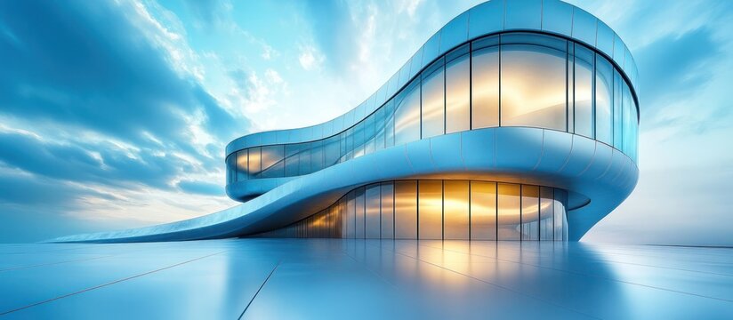 Modern building exterior on a bright sunny day with blue sky and clouds
