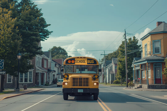 Close-up environmental portrait of a friendly school bus driver standing in front of a yellow school bus outdoors.