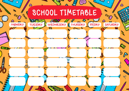 Weekly planner for kids printable template. School timetable for schoolmates. Children schedule for a week for planning daily routine, classes, hobbies. Back to school planner with rainbows and stars.