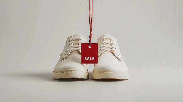 Feet with white sneakers and white socks against a clear blue sky, soles facing the camera.