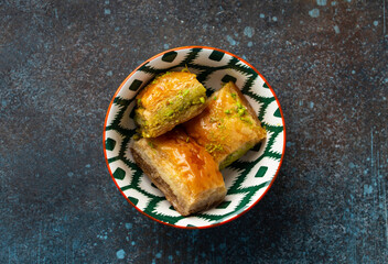 Baklava - traditional Turkish dessert pastry made of filo layers with chopped nuts and syrup