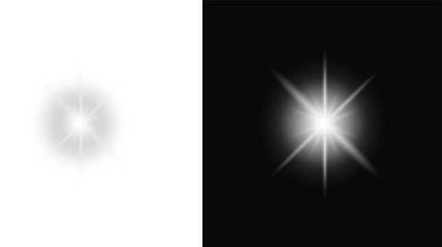 Two bright starburst light effects isolated with subtle glow and rays on a dark canvas