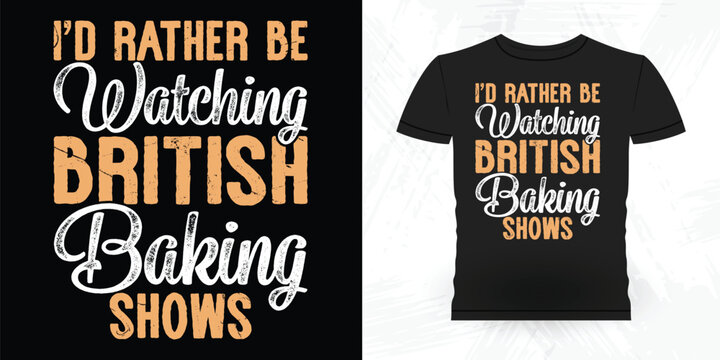 I'd rather be watching british baking shows- Baking t shirts design, Hand drawn lettering phrase, Calligraphy t shirt design, Isolated on white background, svg Files for Cutting Cricut and Silhouette