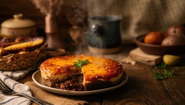 Shepherd's pie, classic dish featuring ground meat topped with creamy mashed potatoes, hearty meal choice