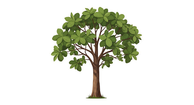 Lush Green Broadleaf Tree Illustration with a Sturdy Brown Trunk and Dense Foliage.