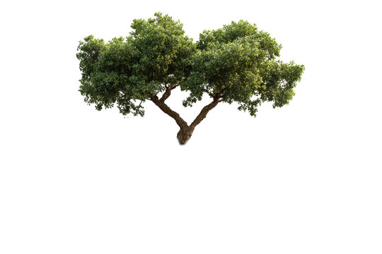 Isolated broadleaf tree with dense foliage, vibrant green leaves and sturdy trunk for design