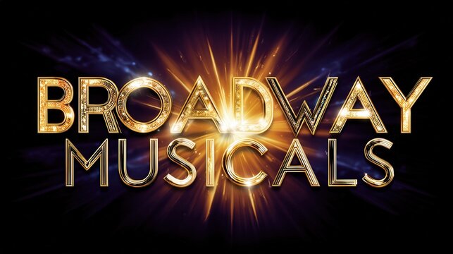 gold illustration says "BROADWAY MUSICALS" sign, banner, wallpaper, backdrop