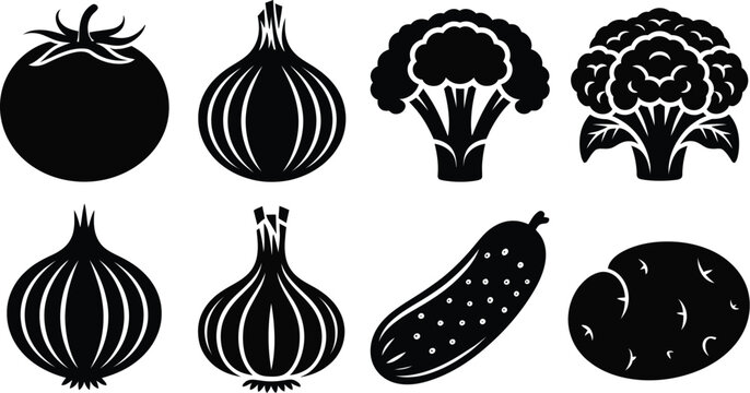 Collection of vegetable outline icons including carrot broccoli tomato potato eggplant lettuce onion salad pepper corn asparagus mushroom food vector