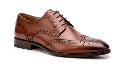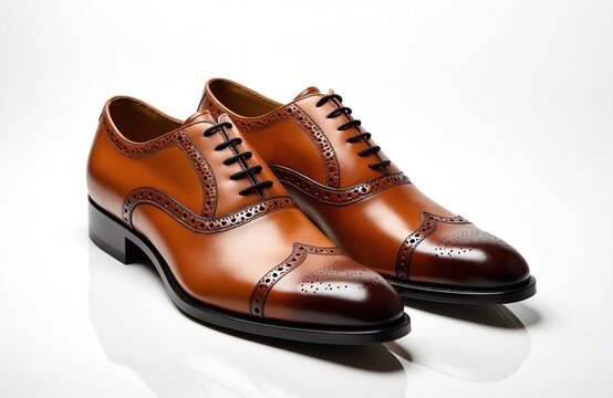 elegant men's tan oxford brogue shoes for formal occasions and stylish wear, pair of leather shoes on white background, ai generated