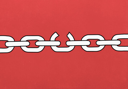 A broken chain link symbolizes a severed connection or a failed relationship.